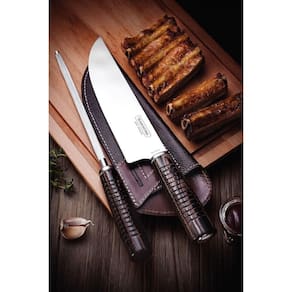 Mais Informações - A lâmina de aço inox da faca têm maior durabilidade do fio devido ao tratamento térmico.Chaira possui haste de aço carbono revestida com cromo-duro que garante uma maior durabilidade e precisão para a afiação.Os cabo de madeira tratada Polywood são resistentes à impactos e alta temperaturas garantindo maior resistência e durabilidade.A bainha em couro que oferece uma proteção ao fio da faca, permitindo o transporte e armazenagem com maior segurança.Estojo de madeira que oferece uma proteção as peças, permitindo o transporte e armazenagem com maior segurança.Pode ir à máquina de lavar louças facilitando seu dia a dia.