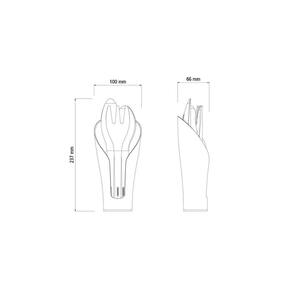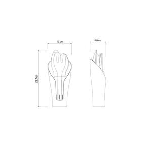 - Contém 4 peças: 1 pazinha larga, 1 pazinha estreita, 1 garfinho 3 dentes e 1 contenedor.