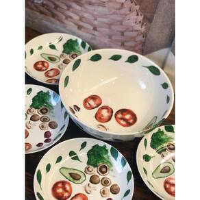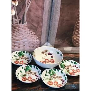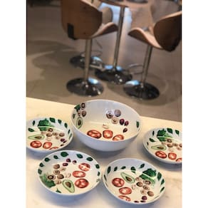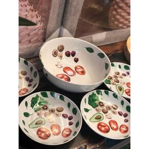 Charme, beleza e praticidade. Estas são as principais características deste conjunto para salada em porcelana 5 peças- L hermitage Contém: 1 Prato fundo para servir -27cm + 4 Pratos fundos-20cm Material: Porcelana Fotos Ilustrativa