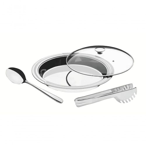 Jogo Para Servir Tramontina Ciclo Aço Inox Com Tampa De Vidro 3 Peças Servir bem é um verdadeiro presente para o dia-a-dia. Travessas, baixelas e saladeiras recebem, com bom gosto e beleza, os pequenos prazeres da culinária. é a Tramontina cuidando de todos os detalhes para que as refeições sejam sempre únicas. Recomendações de Uso: Antes do uso: Antes de utilizar o , remova as eventuais etiquetas e lave-o com água quente e de uso: Durante a lavagem use somente esponja macia, outros tipos de produtos, como palha de aço, poderão riscar ou prejudicar o brilho do produto. Enxágue bem a peça a fim de remover totalmente os resíduos dos produtos de limpeza, que por serem abrasivos, podem danificar o inox. Após a lavagem enxugue-o, pois as substâncias químicas contidas na água poderão causar manchas. Sempre que possível use água quente, pois renova o brilho do produto. Evite o da peça com superfícies quentes, pois podem provocar a descoloração do produto. Quando usar a máquina de lavar louça, recomendamos retirar o produto logo que tenha terminado o ciclo enxaguar, a fim de que o mesmo seja secado manualmente.- Foto meramente ilustrativa.- Embalagem litografada. Informações Adicionais: