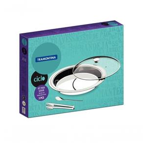 Jogo Para Servir Tramontina Ciclo Em Aço Inox 3 Peças Servir bem é um verdadeiro presente para o dia-a-dia. Travessas, baixelas e saladeiras recebem, com bom gosto e beleza, os pequenos prazeres da culinária. é a Tramontina cuidando de todos os detalhes para que as refeições sejam sempre únicas. Recomendações de Uso: Antes do uso: Antes de utilizar o , remova as eventuais etiquetas e lave-o com água quente e de uso: Durante a lavagem use somente esponja macia, outros tipos de produtos, como palha de aço, poderão riscar ou prejudicar o brilho do produto. Enxágue bem a peça a fim de remover totalmente os resíduos dos produtos de limpeza, que por serem abrasivos, podem danificar o inox. Após a lavagem enxugue-o, pois as substâncias químicas contidas na água poderão causar manchas. Sempre que possível use água quente, pois renova o brilho do produto. Evite o da peça com superfícies quentes, pois podem provocar a descoloração do produto. Quando usar a máquina de lavar louça, recomendamos retirar o produto logo que tenha terminado o ciclo enxaguar, a fim de que o mesmo seja secado manualmente.- Foto meramente ilustrativa.- Embalagem litografada. Informações Adicionais: