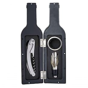 Jogo Para Vinho Em Inox Mini Garrafa Com 3 Peças 23 Cm - Mimo Style - Ac12536 Jogo para Vinho em Inox Mini Garrafa com 3 Peças 23 cm - Mimo Style - AC12536, a Mimo Style é uma empresa apaixonada pelo segmento de utilidades domésticas, buscando os melhores fornecedores em diversos países do mundo a fim de garantir a qualidade dos produtos, garantindo toda a seriedade do produto, armazenando com cuidado e vendendo os produtos com excelentes condições; tenha o prazer de ter em sua casa um produto bonito e elegante. O Jogo para Vinho com 3 Peças, produto moderno com estojo diferenciado, excelente acabamento e é composto por 1 Saca Rolha, 1 Salva gotas em forma de bico e 1 Anel Salva Gotas, produzidos em inox, material resistente e de alta qualidade, o estojo em formato de garrafa emborrachada e forrada de modo que as peças fiquem bem acomodadas. Charme e elegância para a sua casa ou para presentear. O Jogo para Vinho é útil, durável e funcional, ideal para os apreciadores de vinho. Tamanho: 6.2 x 6.2 x 23.5 cm Litragem: 23.5 cm Peso: 194 g Dicas de conservação: não utilize produtos abrasivos.