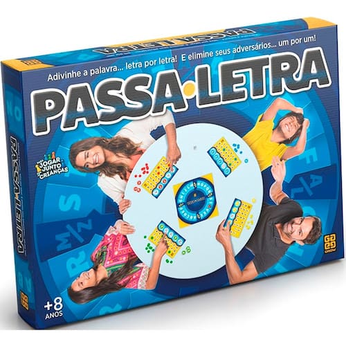 Adivinhe a palavra... letra por letra E elimine seus adversários... um por um Escolha uma palavra de até cinco letras e tente decifrar a dos seus adversários antes que eles descubram a sua O Passaletra é um jogo em que raciocínio lógico e sorte se juntam para entreter a família toda. Acertando as letras, uma a uma, e arriscando palpites na hora certa, você será o grande vencedor deste desafio Faixa Etária A partir de 8 anos Componentes 1 tabuleiro, 1 peão, 4 porta-palavras, 92 fichas cartonadas, 20 cartões tampa-letras e manual de instruções. Dimensões da embalagem 27,1 x 37,6 x 5,5 cm Alimentação NA Participantes 2 a 4 Garantia 3 meses Certificação Inmetro CE-BRI/ICEPEX-N 01024-25 - NM300-2004 - OCP Ean: 7908010135879