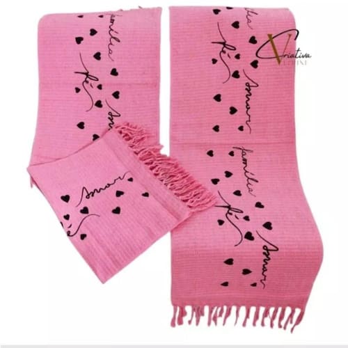 Jogo Passadeira Com Nozinho 03 Peças Jogo De Tapete Para Cozinha Geometrico 100% Algodão Modelo Família Amor E Fé Rosa