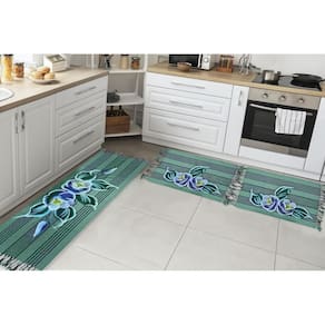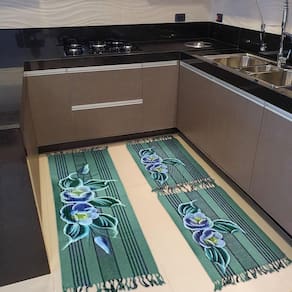 Jogo Passadeira Cozinha Kit 3 Pçs Tear Rustico Pintado A Mão