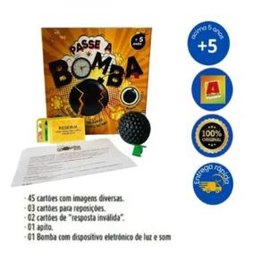 O objetivo é simples: passe a bomba rápido para não ser pego quando ela explodir! Perfeito para reunir amigos e família, o jogo estimula a agilidade, o raciocínio rápido e garante muitas risadas. Produzido com material resistente e acabamento de qualidade, ele é seguro e fácil de usar, sendo uma excelente opção para festas, noites de jogos ou para presentear.