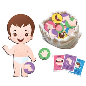 Conteúdo da Embalagem: 1 Saquinho Grande, 1 boneco, 20 Cartas de Curiosidade, 20 Peças com Partes do Corpo