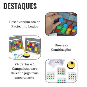 Mais sobre o Produto: O Jogo Pedagógico Logic Color com Campainha desafia os participantes a resolverem quebra-cabeças lógicos, combinando cores e estratégias para alcançar o sucesso. A interação social e aprimoramento das habilidades cognitivas são garantidos em cada partida.