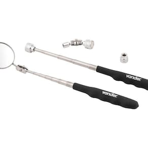 Conteúdo da embalagem1 Jogo de pegador magnético composto por um estojo plástico com 5 peças, sendo: 1 haste adaptadora, 1 espelho telescópico e 3 pontas intercambiáveisAplicações e dicas de usoIndicado para alcançar peças em locais de difícil acessoDestaques e diferenciaisPossuui cabo emborrachado proporcionando maior conforto para operador DETALHES TÉCNICOS Quantidade de peças do jogo de pegador magnético e espelho telescópico: 05 peças Conteúdo: 1 peça haste adaptadora 1 peça espelho telescópico 3 peças pontas intercambiáveis