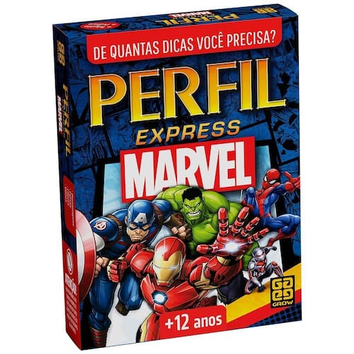 Perfil express marvel: uma nova forma de jogar o clássico da grow em uma versão com temática que engloba exclusivamente o mundo marvel.O jogo traz quatro divertidas categorias que vão testar o conhecimento do pessoal: personagens, coisas, filmes e vilões.Cada cartela possui 10 dicas que valem até 10 pontos. A primeira dica é menos reveladora, e as seguintes, de maneira progressiva, aumentam mais as chances de acerto.Quem nunca quis desafiar sua expertise no universo marvel com os amigos de maneira rápida e emocionanteEntre no ritmo e reúna a galera para aproveitar ao máximo este rico conteúdo do perfil express marvel Homologação Inmetro: CE-BRI/ICEPEX-N 01264-25-16