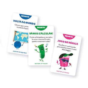 Contém: 1 Tabuleiro, 348 Cartas de Perguntas e Respostas, 6 Peões e 2 Dados.