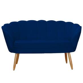Jogo Pétala Namoradeira e 2 Poltronas Estofada Para Recepção Suede Azul Marinho - LM DECOR