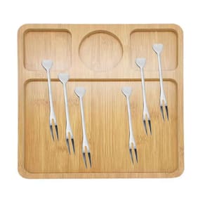 Este kit acompanha: Linda petisqueira 4 divisões + 6pçs garfinhos inox coração