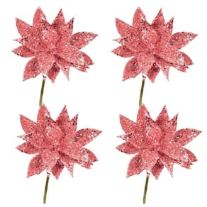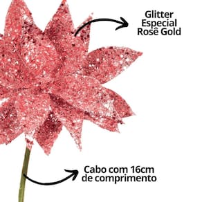 -04 Unidades Folhagem Pick Natal Glitter Especial Rosê Gold 7cm x 16cm - Magizi