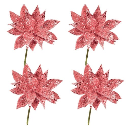 Dê um toque de brilho e sofisticação à sua decoração natalina com este Jogo de 4 Picks de Folhagem, decorados com glitter especial na elegante cor Rosê Gold. Cada pick mede 7cm, sendo perfeito para enfeitar árvores de Natal, guirlandas e arranjos diversos. A delicadeza e o brilho sutil dessas folhagens proporcionam um efeito encantador, destacando-se em qualquer ambiente e conferindo um ar festivo e luxuoso às suas celebrações.