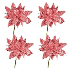 -04 Unidades Folhagem Pick Natal Glitter Especial Rosê Gold 7cm x 16cm - Magizi