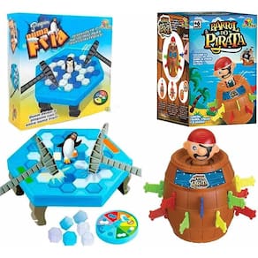 Obs: esse anúncio se refere a um kit de jogos, você receberá o jogo pula pirata mini barril + jogo pinguim quebra gelo.