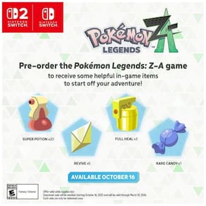 Marca: Nintendo Fabricante: Nintendo / Game Freak Título: Pokémon Legends: Z-A Plataforma: Nintendo Switch, Nintendo Switch OLED, Nintendo Switch Lite, Nintendo Switch 2 Tipo de produto: Jogo eletrônico em cartucho físico Gênero: RPG de ação com batalhas em tempo real Modo de jogo: Um jogador, com modos de batalha local e online em Z-A Battle Club Ambientação: Lumiose City e wild zones na região de Kalos Mecânica de batalha: Combate em tempo real com movimentação livre de Treinador e Pokémon Recurso de Mega Evolução: Suporte a Mega Evolution para Pokémon específicos, incluindo encontros com Rogue Mega-Evolved Pokémon Modos especiais: Z-A Royale e Z-A Battle Club Faixa etária: Everyone 10+ Idioma do jogo: Inglês Tipo de mídia: Cartucho para Nintendo Switch Compatibilidade: Consoles da família Nintendo Switch com entrada para cartucho físico Uso recomendado: Entretenimento eletrônico com foco em captura, treinamento e batalhas de Pokémon em ambiente urbano Conteúdo da embalagem: 1 cartucho de jogo Pokémon Legends: Z-A para Nintendo Switch e estojo plástico Manual do usuário: Inglês Marca: Não Informado