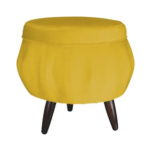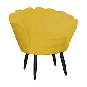 Jogo Poltrona Estofada Com 1 Puff Pés Palito Clínica Pétala Suede Mostarda - LM DECOR