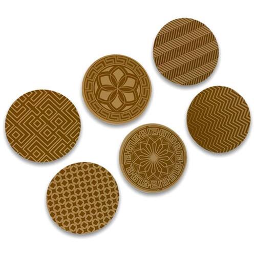 Conteúdo do envio - 1 unidade do Jogo porta copos 6 unidades redondo 10cm em MDF e cortiça