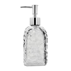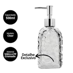Porta Sabonete Líquido em vidro texturizado transparente modelo Clear Bolhas, com capacidade de 500ml, ideal para sabonetes líquidos, hidratantes ou álcool em gel. Seu design clean e texturizado proporciona um toque moderno e refinado à bancada.