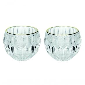Jogo exclusivo modelo em vidro facetado redondo com borda dourada 2 unidades!