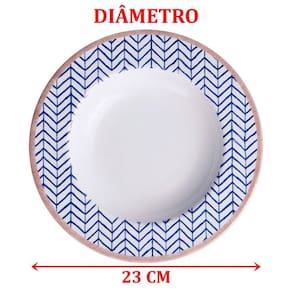 Características Gerais do Produto: - Material: Porcelana - Modelo: Pratos Fundo Abstratta - Cor: Azul; Branco - Dimensões aproximadas: Diâmetro 23cm Garantia: - Garantia contra no transporte