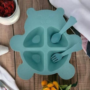 Jogo Prato Infantil Divisórias com Talheres Urso Baby Fibra de Bambu PP Lyor