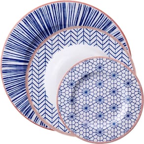 Jogo Prato Raso Fundo Sobremesa 30Peças 10 Pessoas Abstratta -