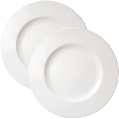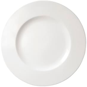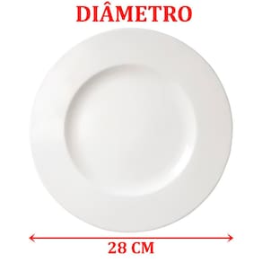 Kit 12 Pratos Rasos Aba Larga Branco Com 28cm De Diâmetro;