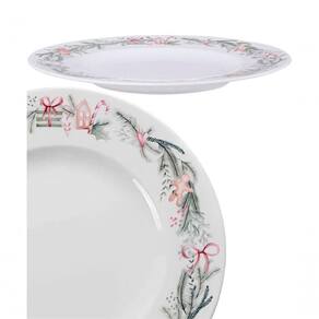 Kit 8 Pratos Rasos Noite Feliz Reto com 28cm De Diâmetro;