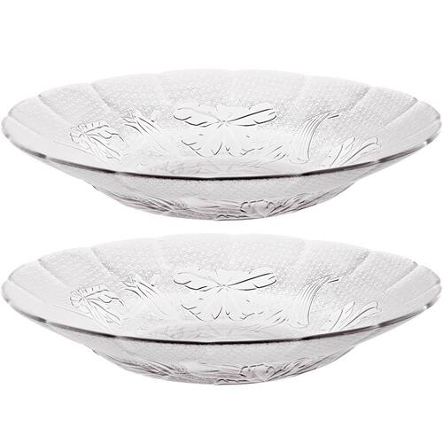 Kit 12 Prato Fundo Amber Em Vidro Transparente 23cm De Diâmetro;