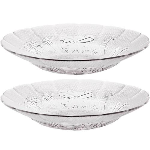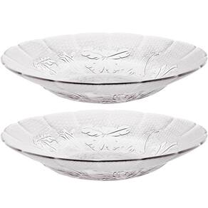Kit 4 Prato Fundo Amber Em Vidro Transparente 23cm De Diâmetro;