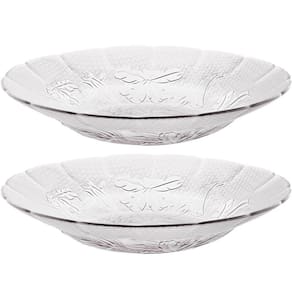 Uso: Resistente a micro-ondas, Resistente a lava-louças; Material: Vidro; Formato: Redondo; Decoração: Flores; Cor: Transparente Cristal Âmbar; Diâmetro: 23cm; Instruções De Cuidado: