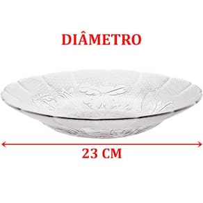 Características Gerais do Produto: - Material: Vidro - Modelo: Prato Fundo Amber em Vidro Transparente - Cor: Transparente - Dimensões aproximadas: Diâmetro 23cm Garantia: - Garantia do site - 1 Mês