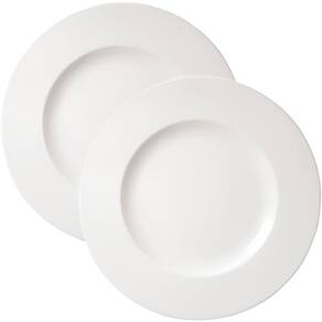 Kit 10 Pratos Sobremesa Aba Larga Branco Com 21cm De Diâmetro;