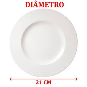Características Gerais do Produto: - Material: Porcelana - Modelo: Pratos Sobremesa Aba Larga Branco - Cor: Branco - Dimensões aproximadas: Diâmetro 21cm Garantia: - Garantia contra no transporte