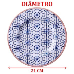 Características Gerais do Produto: - Material: Porcelana - Modelo: Pratos Sobremesa Abstratta - Cor: Azul; Branco - Dimensões aproximadas: Diâmetro 21cm Garantia: - Garantia contra no transporte