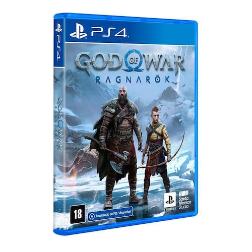 Game God of War Ragnarok Standard - PS4. Embarque em uma jornada épica e comovente onde Kratos e Atreus lutam entre o desejo de manterem-se unidos ou separar-se. Derrote deuses e monstros nórdicos em combates fluidos e expressivos. O Machado Leviatã, Lâminas do Caos e o Escudo Guardião retornam juntamente com uma série de novas habilidades para Kratos e Atreus. Conteúdos extras para download apenas na edição de lançamento.Compre a versão de God of War Ragnarök para PS4 e atualize para PS5 pagando um valor adicional de R$ 50 (*valor sujeito à alteração). Imagens meramente ilustrativas.Todas as informações divulgadas são de responsabilidade do Fabricante/Fornecedor.