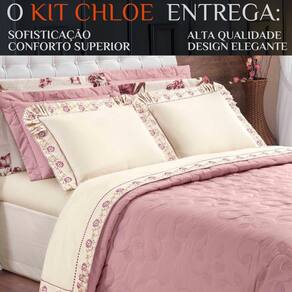 Jogo Queen Size Colcha Chloe 200 Fios Bordado Super Elegante - Rosa