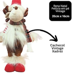 Jogo Rena Casal Pelúcia Vintage Em pé 55cm Cachecol Xadrez