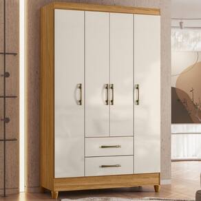 O Guarda roupa é feito em MDP, possui dois nichos e quatro prateleiras amplas e espaçosas podem ser utilizadas para guardar edredons, cobertores, caixas e sapatos, modelo com capelinha central com espelho