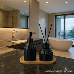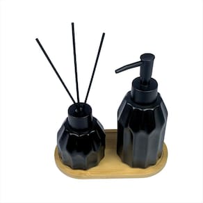 Jogo Saboneteira Difusor Porcelana Preto 3 Peças Banheiro