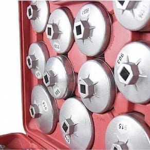 Jogo de saca filtro de óleo com chaves catraca e estrela, para aplicação dos copos nos filtros de óleo inclusas;