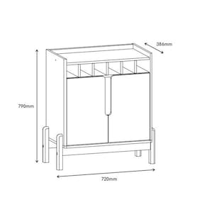 Elaborado em MDF, MDP. Laterais em MDF 25mm, portas e base MDF 15mm. Tampo e prateleiras MDP 15mm.