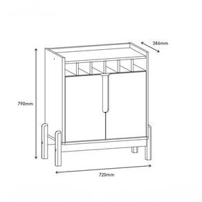 Elaborado em MDF, MDP. Laterais em MDF 25mm, portas e base MDF 15mm. Tampo e prateleiras MDP 15mm.