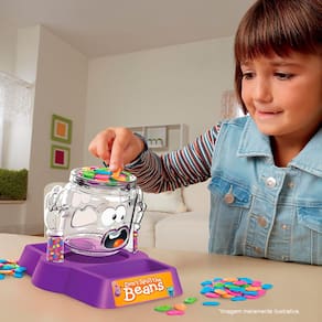 Ideal para crianças a partir de 3 anos, a brincadeira é simples: basta colocar os feijõezinhos no recipiente sem deixar nada cair! A cada rodada, o desafio aumenta: quem derrubar, junta tudo de novo. Um jogo divertido para 2 jogadores, que estimula habilidades como coordenação motora, paciência e raciocínio lógico, além de introduzir noções de organização.