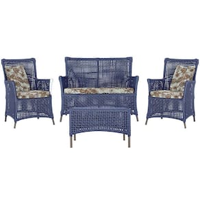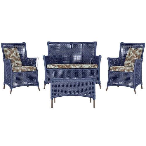Jogo Sofá 2 Poltronas e Mesa Igapó Marrom E6 Trama autêntico Azul