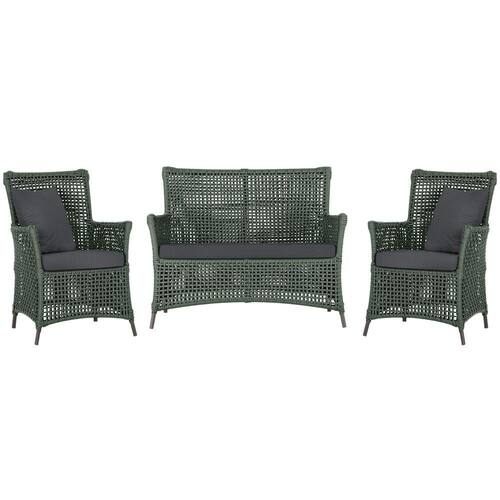 Jogo Sofá e 2 Poltronas de Área Igapó Alumínio Pintura Marrom Corda Náutica Estofado 11 Trama - Verde Musgo