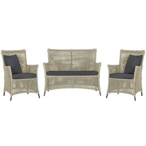 Jogo Sofá e 2 Poltronas de Área Igapó Alumínio Pintura Marrom Corda Náutica Estofado 11 Trama - Bege Médio